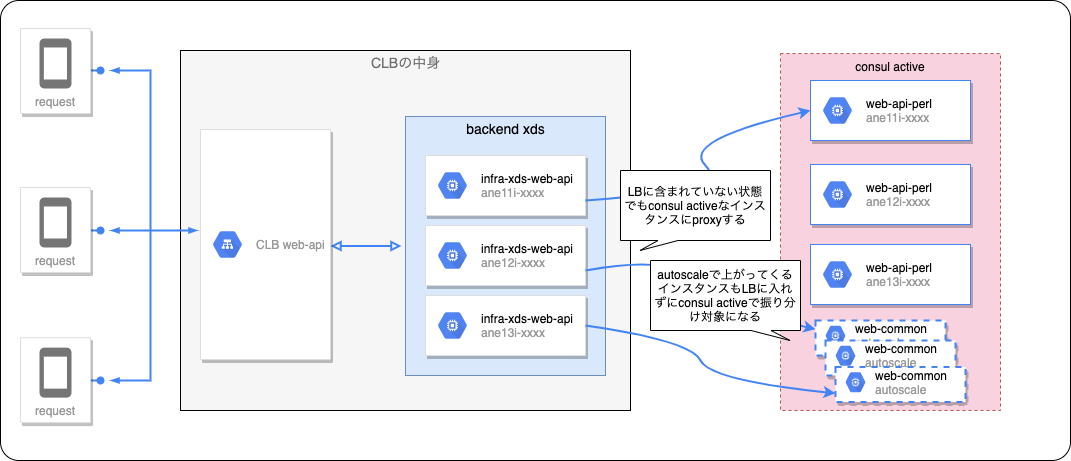 既存のオートスケーリングで CLB の backend group に直接追加せずに、 consul のクラスタ経由で行うように変更 ここで既存機能の一部修正が行われました